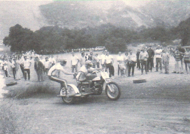 Y ya que citamos al modelo El Bandido, con su carismática transmisión primaria por engranajes, pedal de arranque a la derecha y fabricada principalmente para el mercado de Estados Unidos, aqui cuelgo una foto inedita que nos ha cedido nuestro colega Ignacio Chivite, donde puede verse en acción una El Bandido, a la que le acoplaron un side-car.