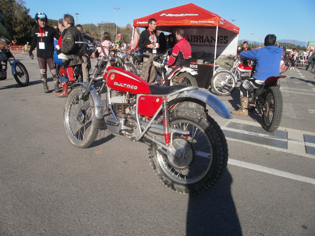 El día 16/12/2012 será una fecha singular dentro del mundillo del trial. Singular por el lugar en que se celebró la prueba (el Circuit de Catalunya), singular por el motivo de la celebración (unirse a la Marató de TV3 para el fomento de la búsqueda de remedios para el cáncer), e histórica por su inscripción (se vendieron alrededor de 640 dorsales). Pilotos de la talla de Jordi Tarres, Bou, Cabestany, Laia Sanz, etc. allí estuvieron presentes. Bultaco con su modelo Sherpa T, ha sido un referente en esta disciplina deportiva, y allí se pudieron ver Sherpas T de todas las épocas, en estado original o modificadas, personalizadas y mejoradas. Sherpas T haciendo las zonas codo a codo y mezcladas con otras marcas míticas, tanto clásicas como actuales. El Club Bultaco estuvo allí con una carpa, y aquí os dejamos algunas fotos de las singulares Sherpas T que allí pudimos ver.