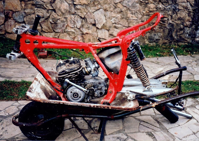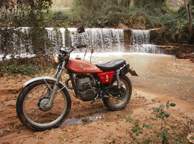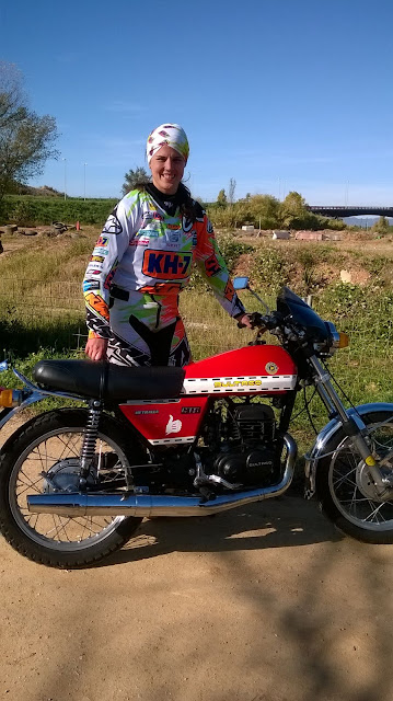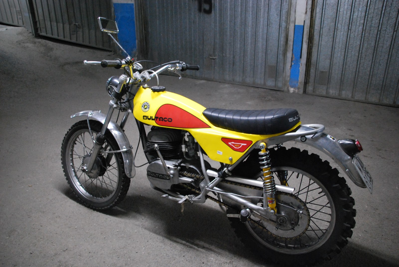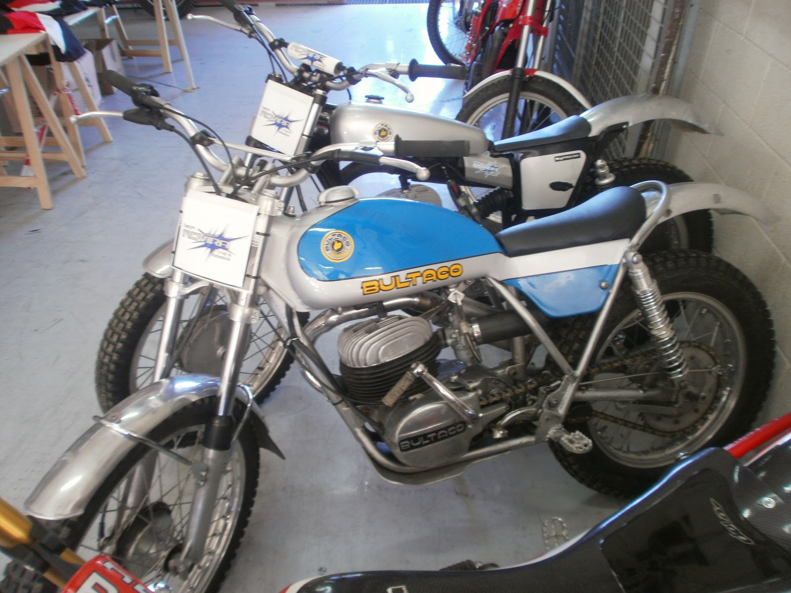 Nos ponemos contentos cada vez que tenemos noticia de que ha "resucitado" una unidad de Bultaco. Sí, cual Ave Fenix, de restos de tres Bultacos diferentes, entre Claudio y Santi se ha recuperado una Gold Medal, y lo mas importante, apta para funcionar. En la trobada de Perafita de 2013 hizo su presentación en sociedad. Como podréis ver por las fotos, también padece de "Astritis"