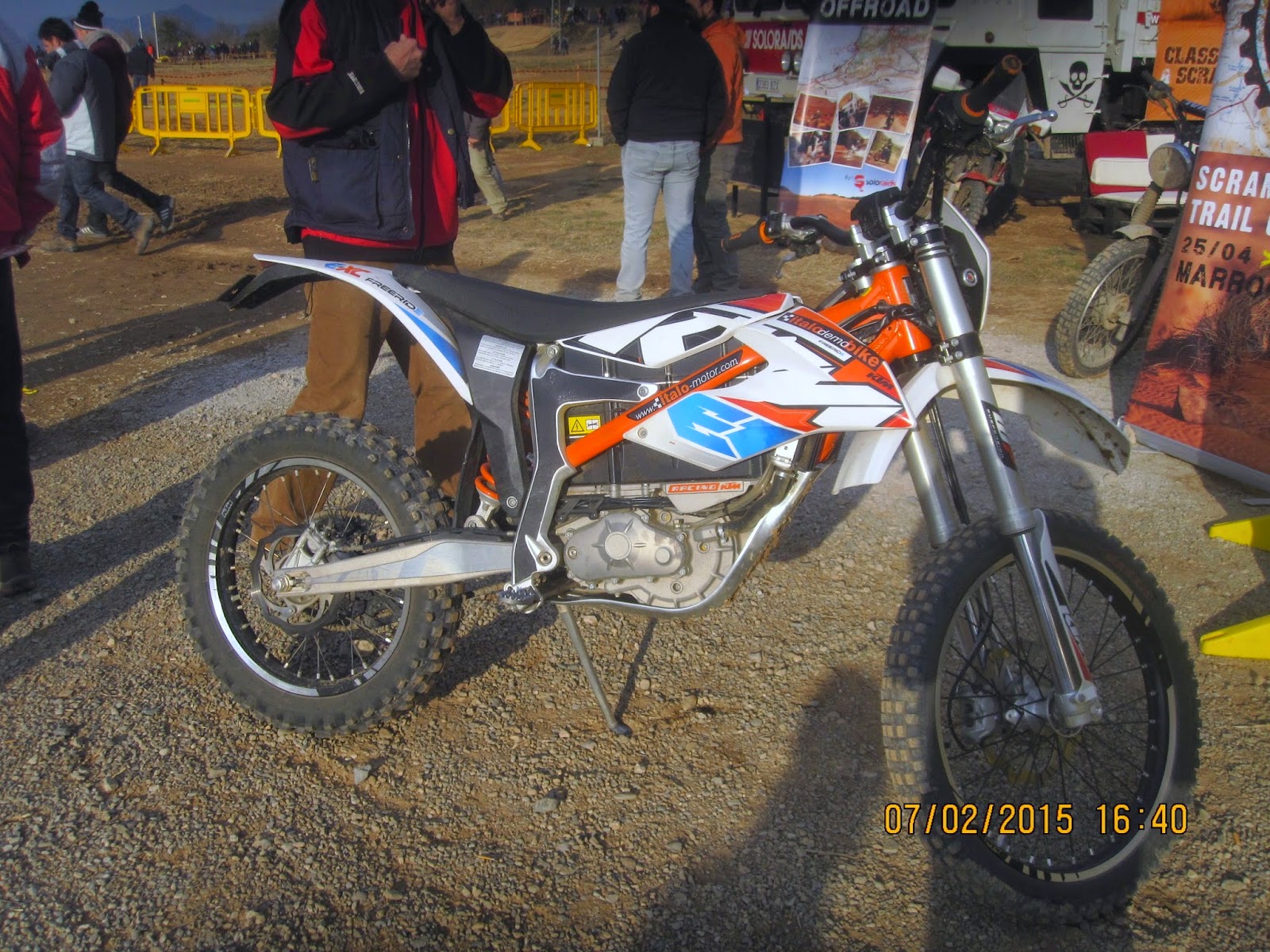 También conviven en el área del evento los últimos modelos que presentan los fabricantes, como esta moto de enduro eléctrica, y que podían probarse en el circuito habilitado para ello.