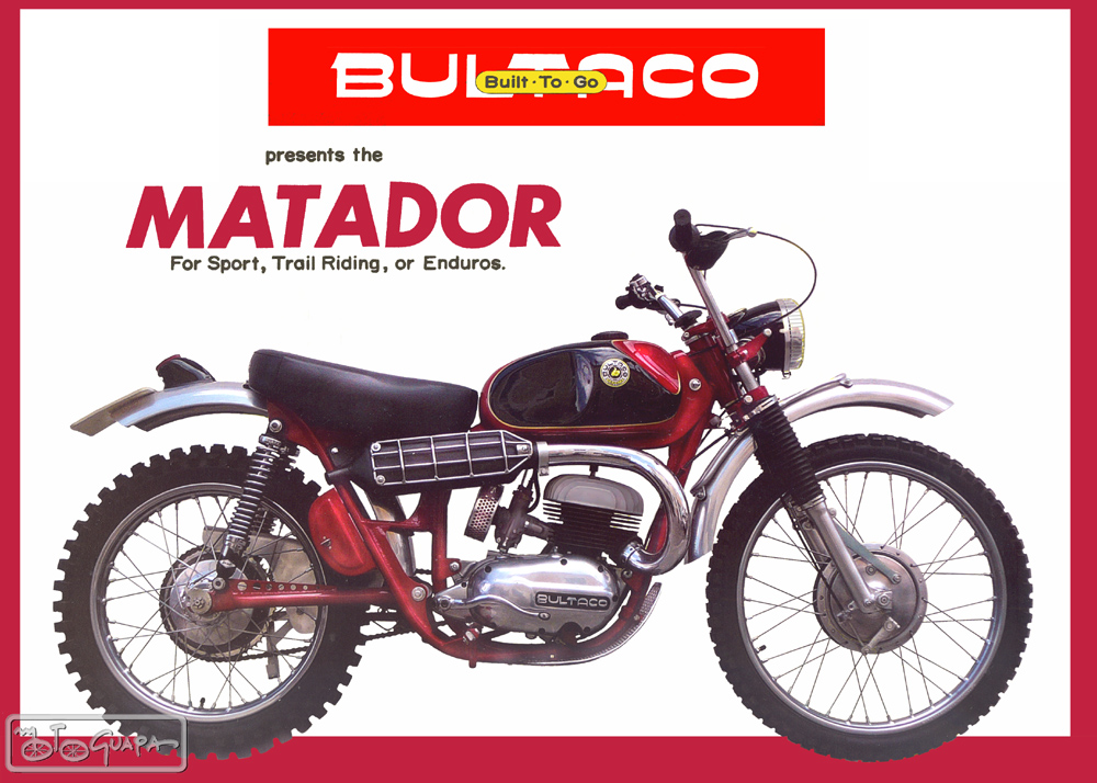 Nuestro colega Jose Luis del Valle, nos remite escaneado este catálogo del primer modelo de las Matador 200 y 250 cc.. La verdad es que es bastante inédito porque hasta la mk 3 y siguientes no circuló mucha propaganda. Observar su similitud con las primeras Sherpa T.
