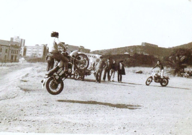Nuestro colega Pascual Molina nos envía esta foto de la época. Podemos verle disfrutando con su Lobito MK 3, por los descampados de detrás de los cuarteles de Pedralbes. (BCN)