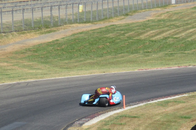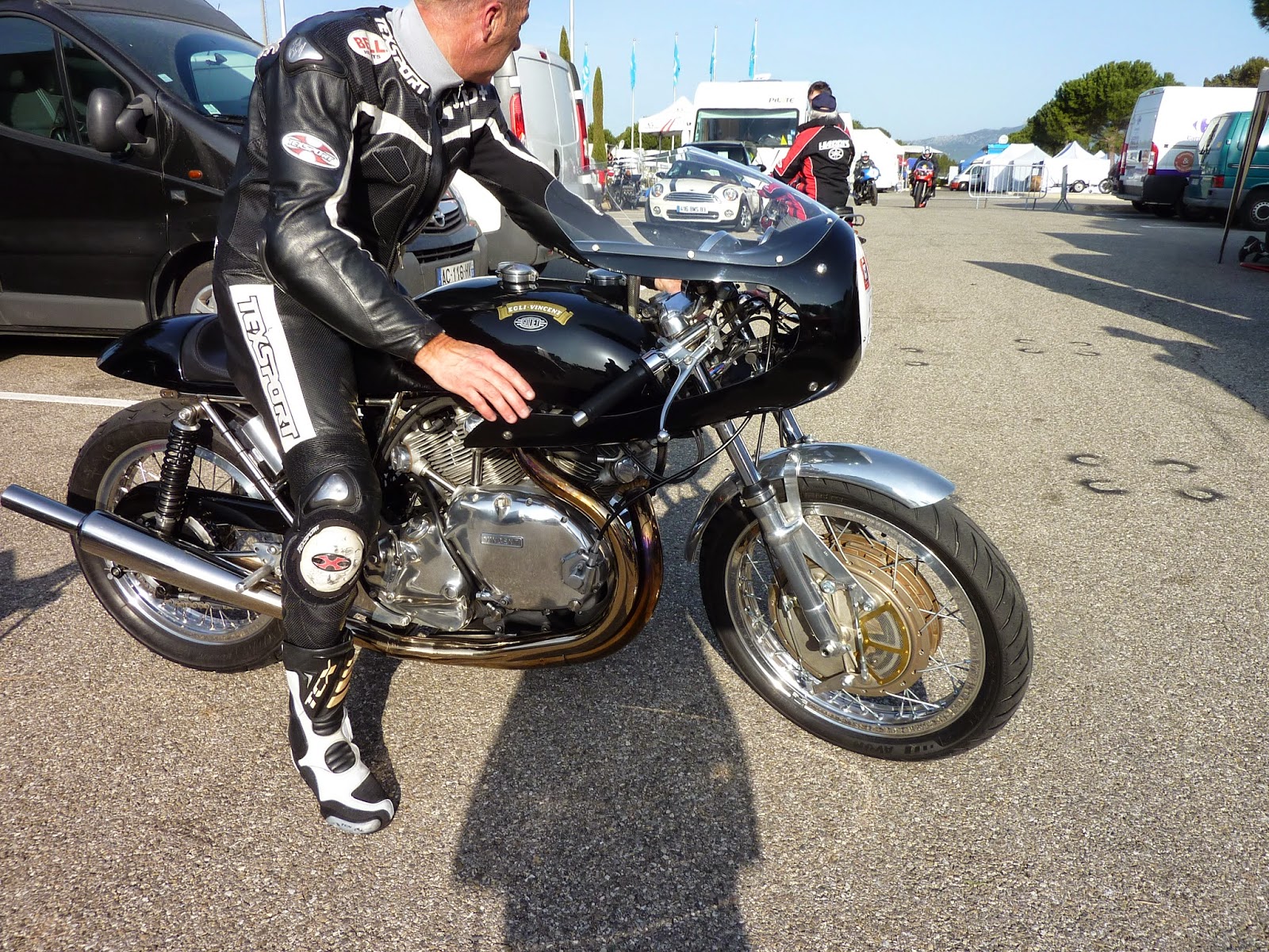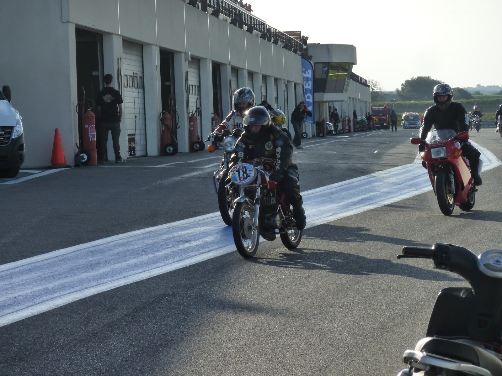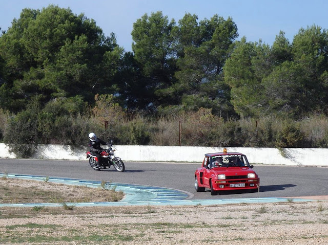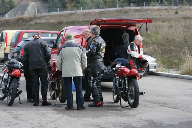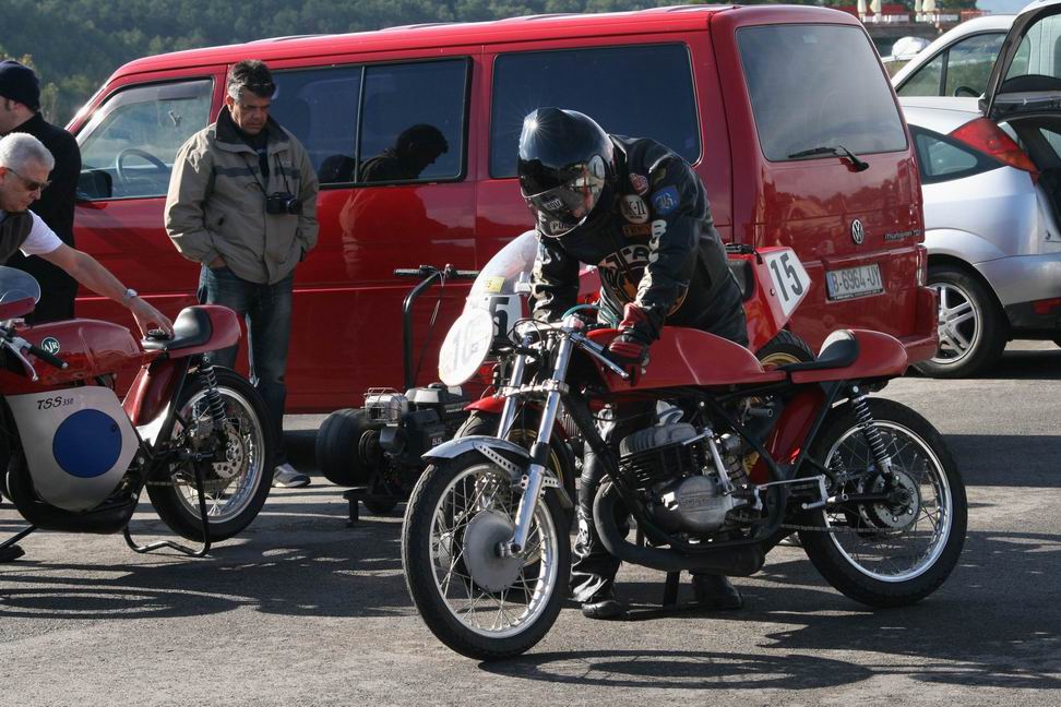 Los pilotos que disfrutan del circuito, están repartidos a partes iguales entre los amantes de las motos clásicas de velocidad (clasificados en dos categorías) y los sidecars (también clasificados en dos categorías segun su antigüedad y potencia). Tuvimos el placer de saludar a dos compatriotas (uno en cada categoría), que junto con sus familias y sus máquinas pasaron allí el fin de semana. Uno de ellos era "Kero Esecaocho" muchacho residente en Tarragona, que "forzó la musculatura" de su Morini 350