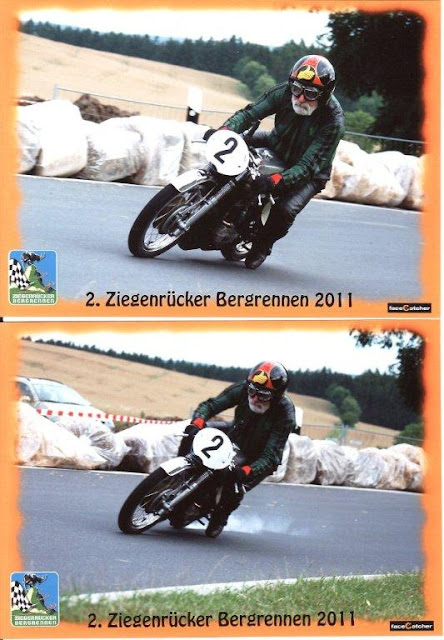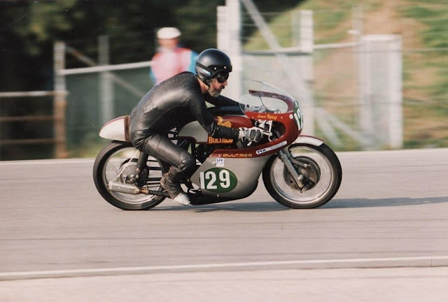 Como consecuencia de la simpatía hacia la marca, que a lo largo de su existencia ha germinado en varios países, hace bastantes años que conocimos a un entusiasta holandés que esporádicamente corre en carreras de clásicas por algunos circuitos europeos. El mide sus TSS y Metralla, con motos de mayor envergadura. Realmente es una rareza, puesto que para él pudiera ser mas fácil conseguir recambio de Triumph, Norton, Honda, etc. pero allí está con Bultaco. A lo largo de mas de 20 años he mantenido contacto con él y nos hemos ido enviando fotos. Mi "old friend" se llama Louis Nyhöf, y aquí cuelgo unas simpáticas fotos de un percance sin consecuencias.