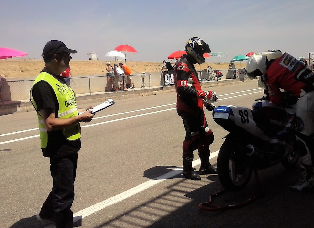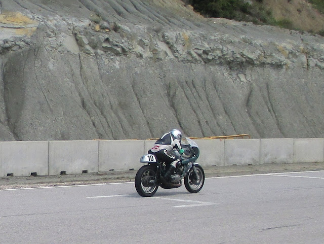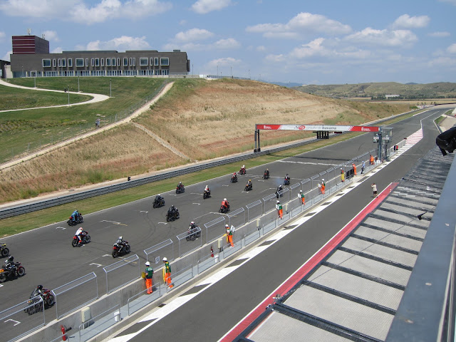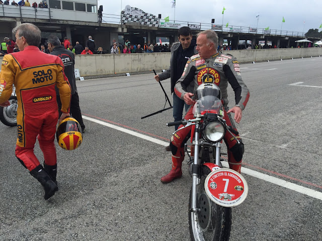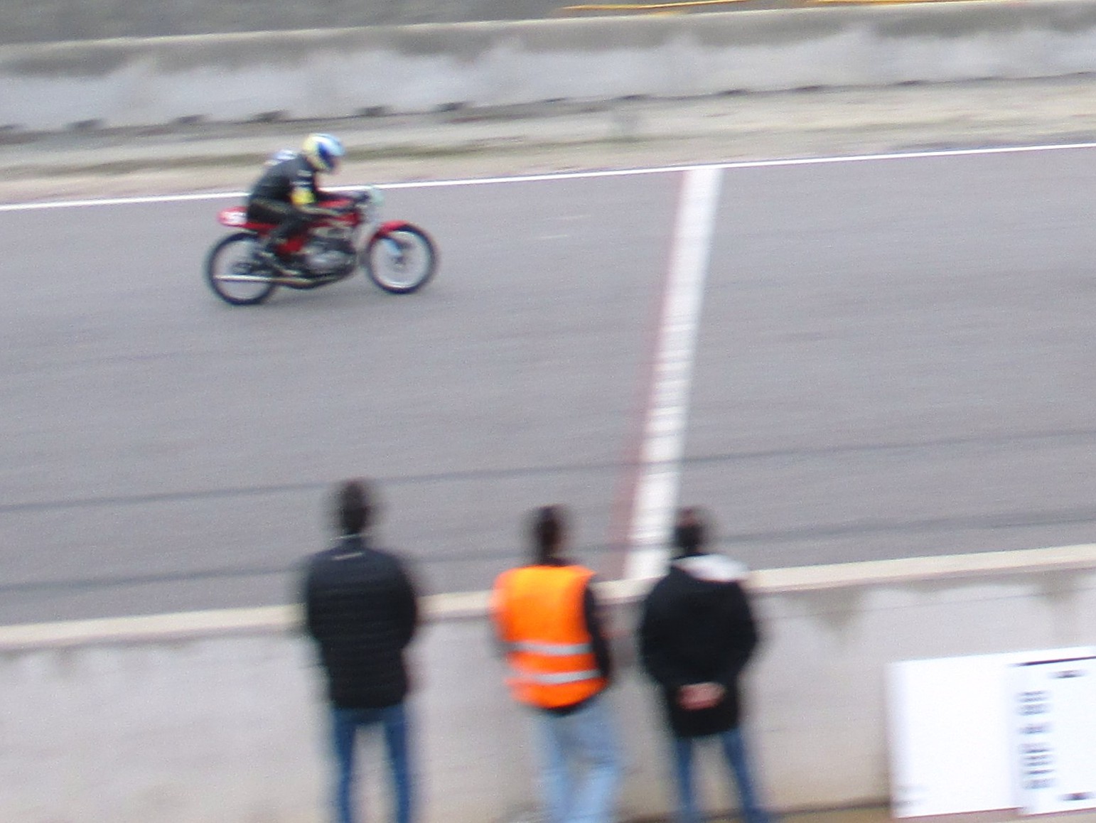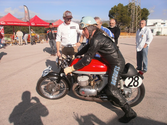 Como es habitual, antes de la carrera, el que acude en moto clásica tiene la oportunidad de dar un par de vueltas al circuito. Va bien para desfogarse... (en la foto, a punto de entrar a pista)