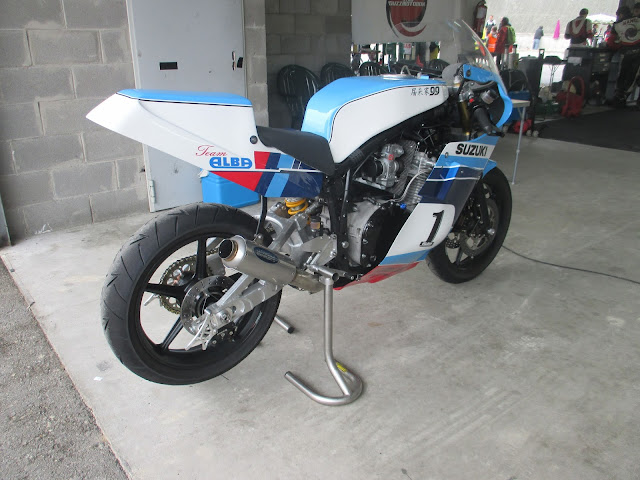 Aunque a decir verdad, las Bultaco quizás sean las mas homenajeadas. Dentro de pista el equipo de Canito Bultó hizo un papel digno, acabando la carrera a pesar de una avería...