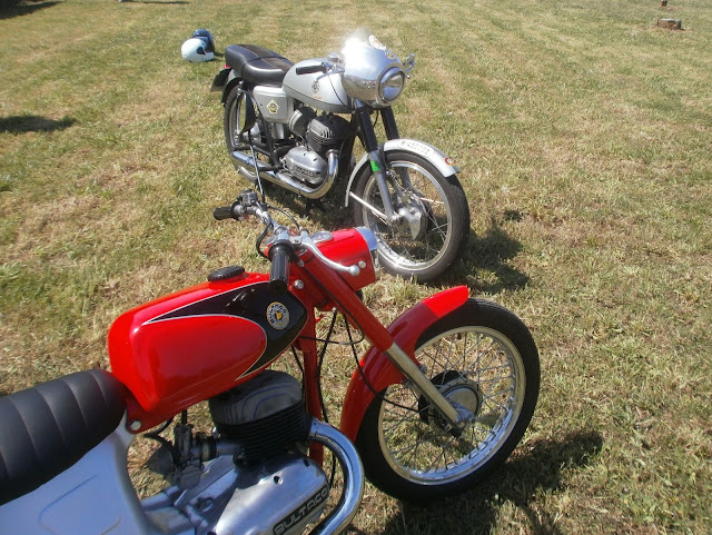 También tuvimos el placer de cambiar impresiones con un coléga que trajo su Bultaco desde la frontera con Bélgica y en especial con Michel Jambor, coleccionista que guarda mas de 50 Bultacos, presidente del Moto Club Montmerle, y que en su día disputaban partidos de moto-ball contra el Moto Club Esplugues. Michel se trajo una Yankee y dos TSS muy preparadas
